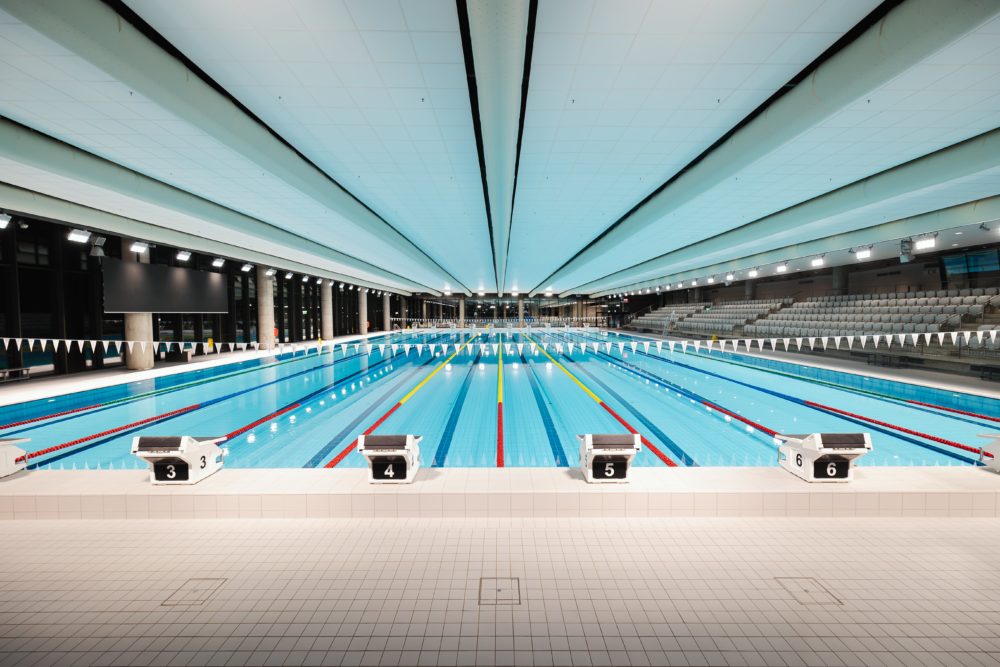 Greta Olimpinio baseino įrengtos tribūnos žiūrovams, kur varžybas gali stebėti net 500 žiūrovų bei papildomas 25 metrų baseinas su dviem takeliais vaikų mokymui plaukti.